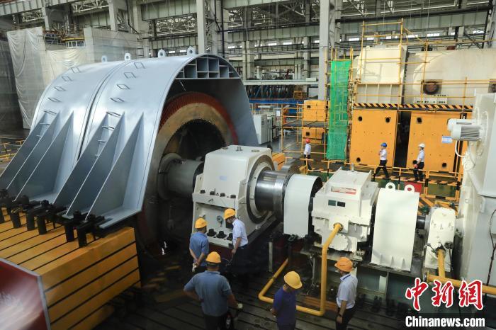 8月16日,四川德陽(yáng),300MW級(jí)變速抽蓄發(fā)電電動(dòng)機(jī)1:1轉(zhuǎn)子飛逸試驗(yàn)。記者 王磊 攝