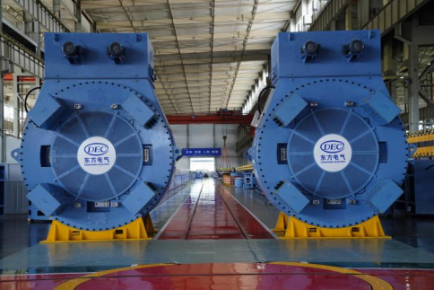 東方電氣26兆瓦級(jí)海上風(fēng)力發(fā)電機(jī)組下線現(xiàn)場(chǎng)