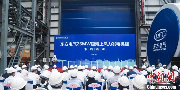 26兆瓦級海上風力發電機組下線現場。中國東方電氣集團有限公司供圖