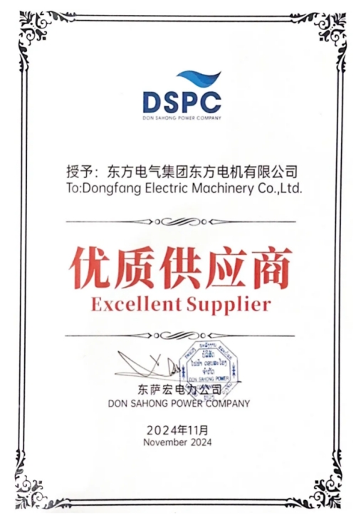 會上,東薩宏電力公司向東方電機頒發“優質供應商”證書。