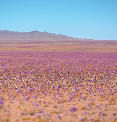 在國家電網(wǎng)智利阿塔卡馬沙漠輸電線路沿線的珍稀植物保護(hù)地區(qū),地下蘊(yùn)藏著珍稀的休眠開花植物,在特定氣候下會綻放成片的花海,被譽(yù)為“花之沙漠”自然奇觀。國家電網(wǎng)供圖