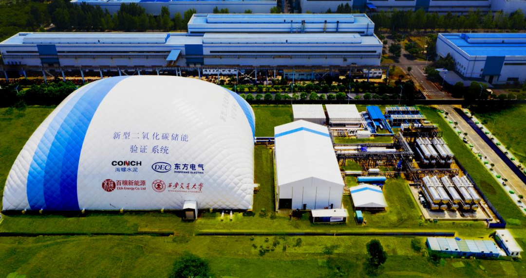 全球首個二氧化碳+飛輪儲能示范項目,是2022世界清潔能源大會示范應用場景之一,由東方電氣集團東方汽輪機有限公司、百穰新能源科技(深圳)有限公司、西安交通大學能源與動力工程學院、北京泓慧國際能源技術發展有限公司共同打造。項目占地18000㎡,約為兩個半足球場大小,儲能規模10MW/20MWh,能在2小時內存滿2萬度電,是全球單機功率最大,儲能容量最大的二氧化碳儲能項目,也是全球首個二氧化碳+飛輪儲能綜合能源站。