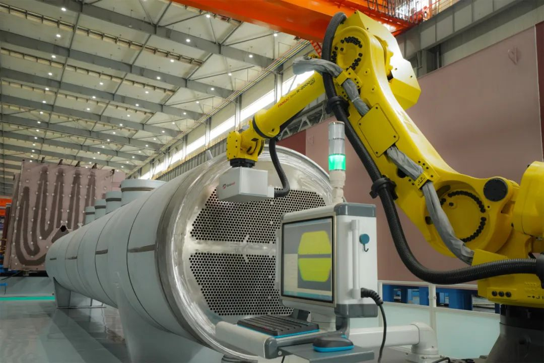 建設以MES為核心的生產管理系統,實現計劃排產、制造執行、質量追溯的閉環管理。通過數字化系統與自動化產線深度融合,建成國內首個葉片加工無人車間及首條黑燈產線,人均效率提升650%,設備利用率達到90%。建成國內首個綠色高效焊接數字化車間,首創行業三零(零缺陷、零排放、零變形)焊接新模式,實現窄間隙智能焊接、多機器人協同焊接、焊縫AI檢測、5G+焊接數采等關鍵技術在汽輪機產品上的應用,人均效率提升300%,直接碳減排380噸/年。建成行業首個總裝數字化車間,開啟汽輪機數字總裝替代傳統實物總裝的新紀元,突破大空間全尺寸測量難、實物裝配周期長等行業技術壁壘,實現總裝周期縮短40%、測量準確率100%。建成全流程制造隔板數字化車間,實現隔板數字交付,首次實現極限空間柔性智能焊接、復雜空間曲面構件機器人焊接磨削一體化等智能化制造,產品制造周期縮短25%,焊接合格率提升至99.5%。