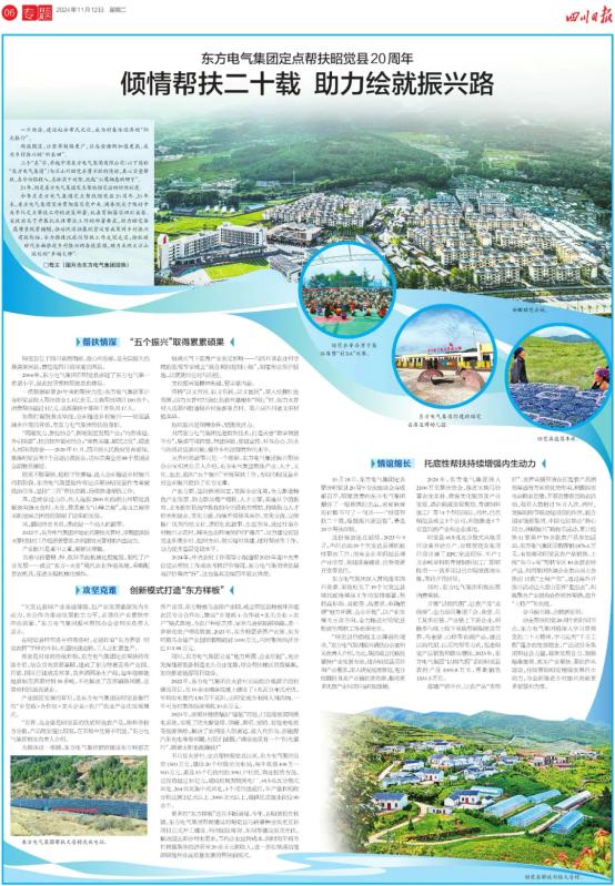 編者按:《四川日?qǐng)?bào)》2024年11月12日刊發(fā)整版專(zhuān)題文章,聚焦東方電氣集團(tuán)定點(diǎn)幫扶昭覺(jué)縣20周年。全文分享如下——