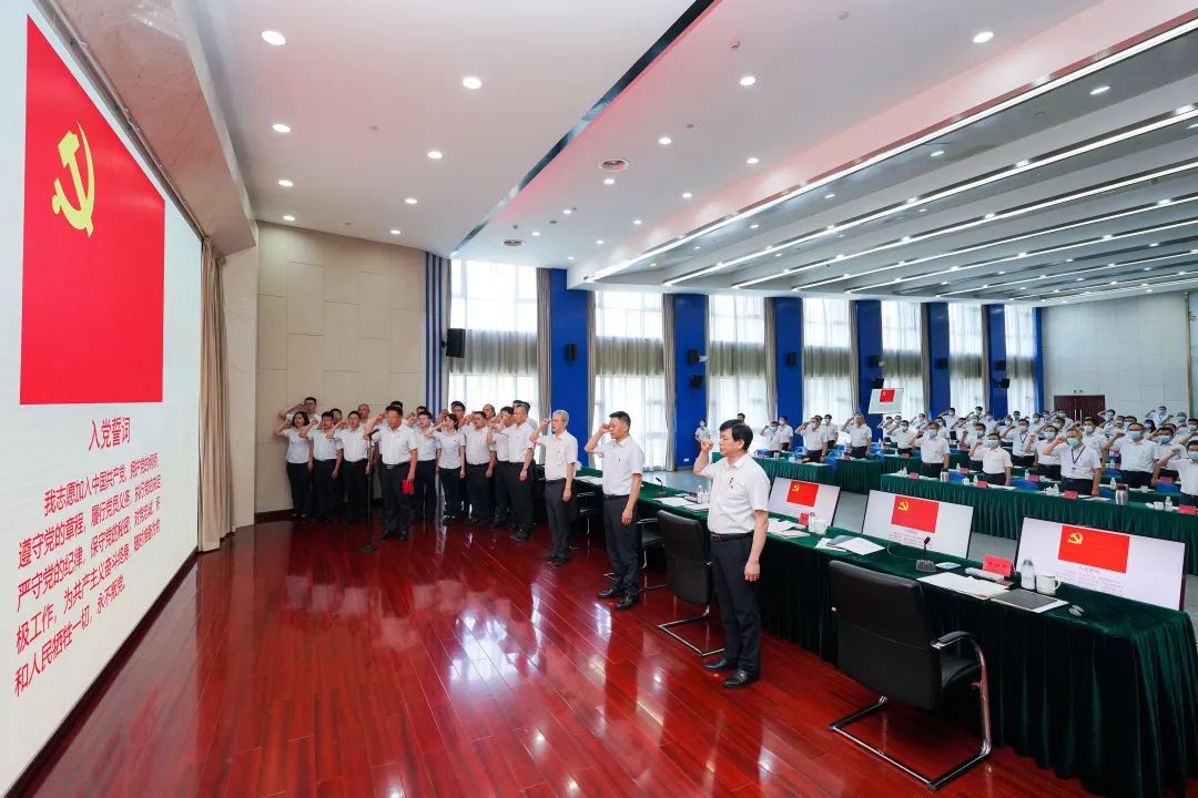 面向黨旗,集團公司新黨員在各個會場進行了入黨宣誓。全體黨員重溫了入黨誓詞。