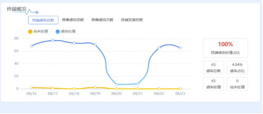 完成集團總部園區(qū)所有終端和服務器的統一部署,利用終端安全管理系統實現對指定IP范圍內終端設備的軟硬資產快速發(fā)現、自動識別與歸類。終端接入落實訪問控制措施,后臺系統實時監(jiān)測終端運行狀態(tài),定時提醒用戶更新系統漏洞。