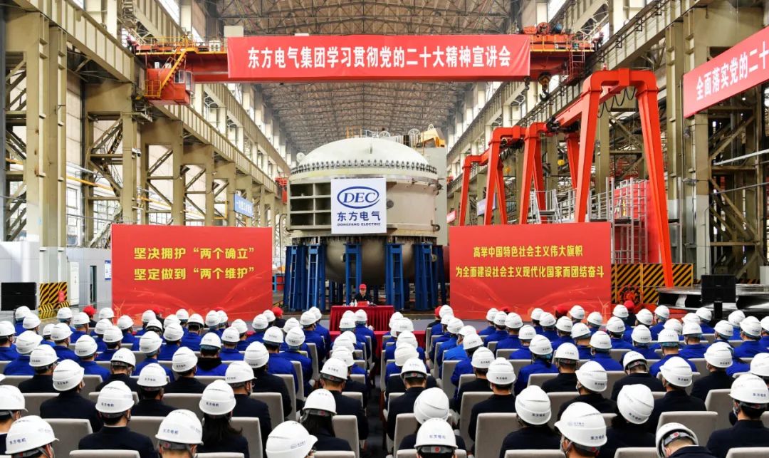 俞培根要求,對黨的二十大報告和黨章作出的關于國資國企改革發展和黨的建設的重大部署,要認真研究、深入思考、系統把握、深化落實。他從“七個深刻把握”對全集團結合實際深入貫徹落實黨的二十大精神作出系統安排,特別是對東方電機在加快建設世界一流企業、提升科技創新支撐作用、加快綠色低碳轉型發展、釋放企業改革活力動力、以高質量黨建引領保障高質量發展等方面提出明確要求。