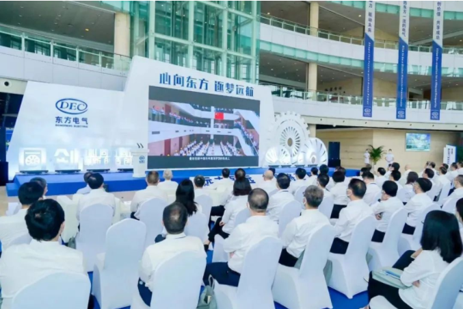 “長(zhǎng)河大江,沖波擊浪,向陽(yáng)而生,迎風(fēng)飛揚(yáng)。熊熊火焰,迸發(fā)光芒,大國(guó)重器,鑄就榮光……”東方電氣之歌昂揚(yáng)激越的歌聲,如同奔涌的波濤,以“鯤鵬水擊三千里, 組練長(zhǎng)驅(qū)十萬(wàn)夫”之勢(shì),唱響東方電氣人在“同·創(chuàng)”文化引領(lǐng)下的同心、同力、同行。