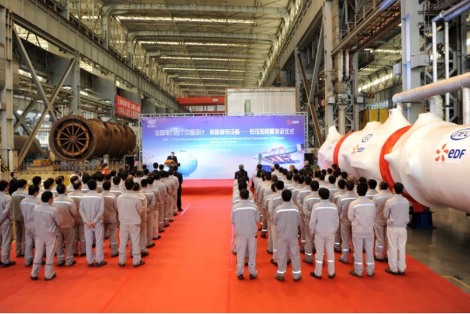 2017年2月14日,在東方電氣核電裝備制造和出海口基地,中國首臺出口歐洲的核電低壓加熱器發運。這是法國電力集團實施核電全球化戰略采購后的第一個投向中國的采購訂單,東方電氣集團通過該項目掌握了歐洲壓力容器指令及標準,成為法國電力集團在中國確立的首家核電產品合格供應商,這也是中國核電走向歐洲市場的重要標志。此外,東方電氣集團積極配合中核、中廣核、國家電投等企業集團,以精益制造、優質服務及誠信透明的核安全文化等優勢推進中國核電“走出去”。