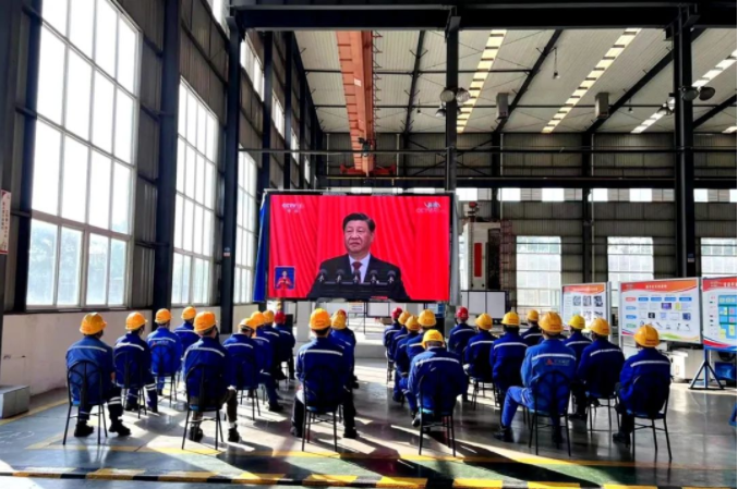 上午10時,東方電氣集團2萬多名黨員干部職工懷著激動和喜悅的心情,在全國31個省市自治區及境外工程項目現場的248個會場,通過電視和互聯網等方式,同步收聽收看黨的二十大開幕會,認真聆聽習近平總書記的工作報告。