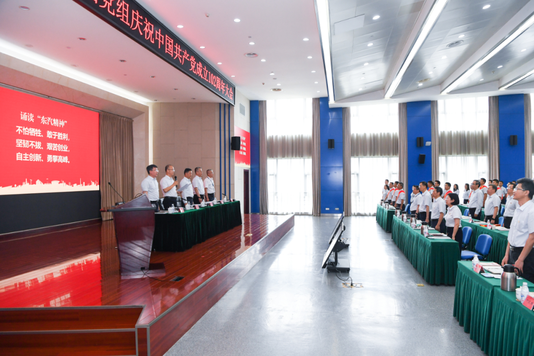 6月28日下午,在嘹亮的國歌聲中,東方電氣集團黨組召開慶祝中國共產黨成立102周年大會,通過回顧黨的光榮歷史、重溫入黨誓詞、表彰先進,激勵和動員全體黨員干部職工更加緊密地團結在以習近平同志為核心的黨中央周圍,推進集團公司高質量發展,全力書寫以中國式現代化全面推進中華民族偉大復興的東方電氣篇章。集團公司領導俞培根、劉智全、袁明剛、張彥軍、李忠軍出席會議。