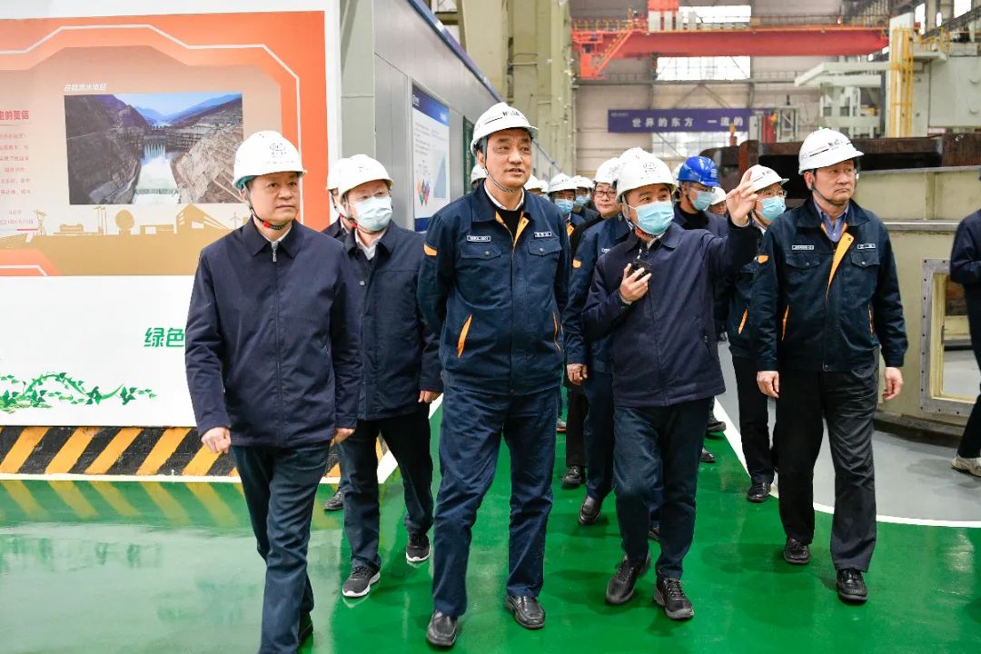 董保同一行先后走訪了東方電機大型清潔能源裝備重型制造數字化車間、特電新車間、東方法馬通主泵生產車間、東方汽輪機控制棒驅動機構生產車間和葉片加工無人車間,深入了解了企業核安全設備生產和智能制造推進情況。