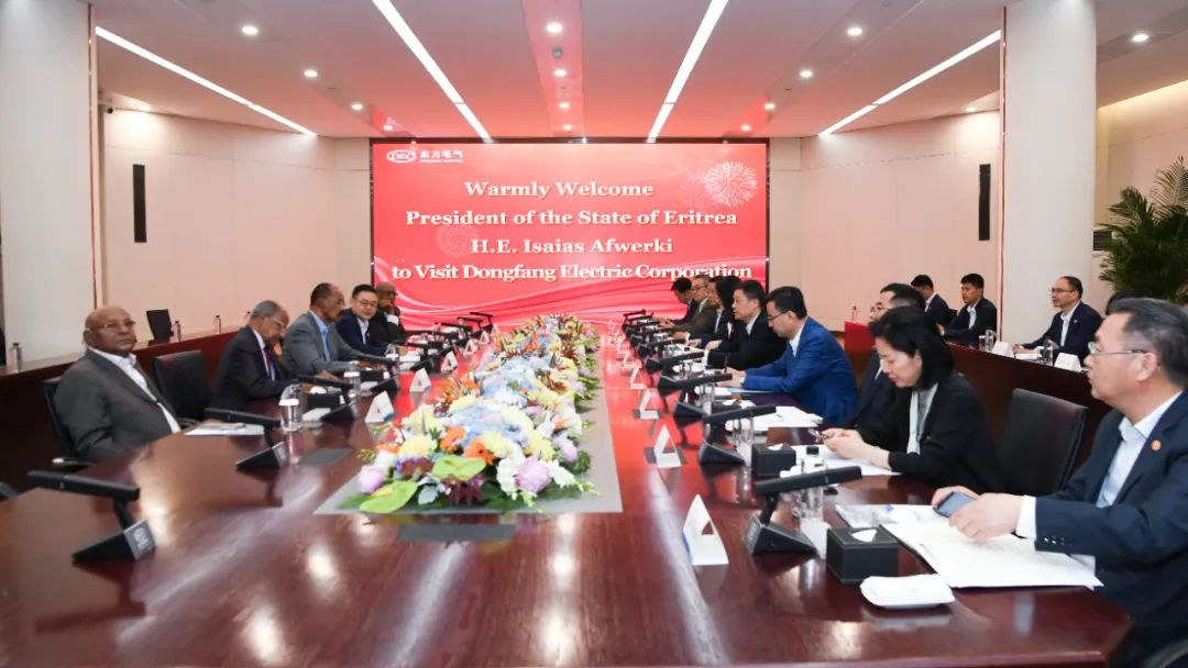俞培根代表東方電氣集團熱烈歡迎伊薩亞斯一行到訪,對厄立特里亞政府給予東方電氣集團的關心和支持表示感謝。俞培根表示,習近平主席與總統閣下就深化中厄兩國朋友加同志的親密友好關系達成系列共識,推動中厄戰略伙伴關系不斷邁上新臺階。美麗的非洲大陸是東方電氣集團高度重視的市場,東方電氣集團將在兩國元首達成的重要共識下,以一流的技術、產品和服務助力厄立特里亞經濟高質量發展,為更加緊密的中非命運共同體貢獻“東方”力量。