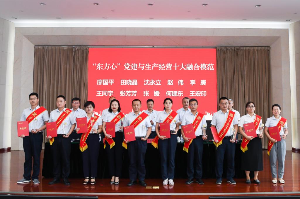 面向黨旗,新黨員代表入黨宣誓,全體參會黨員重溫入黨誓詞。會議發布了《集團公司黨建與生產經營深度融合“四級五步五法”工作導則》,表彰了集團公司“東方心”黨建與生產經營十大融合項目和十大融合模范。