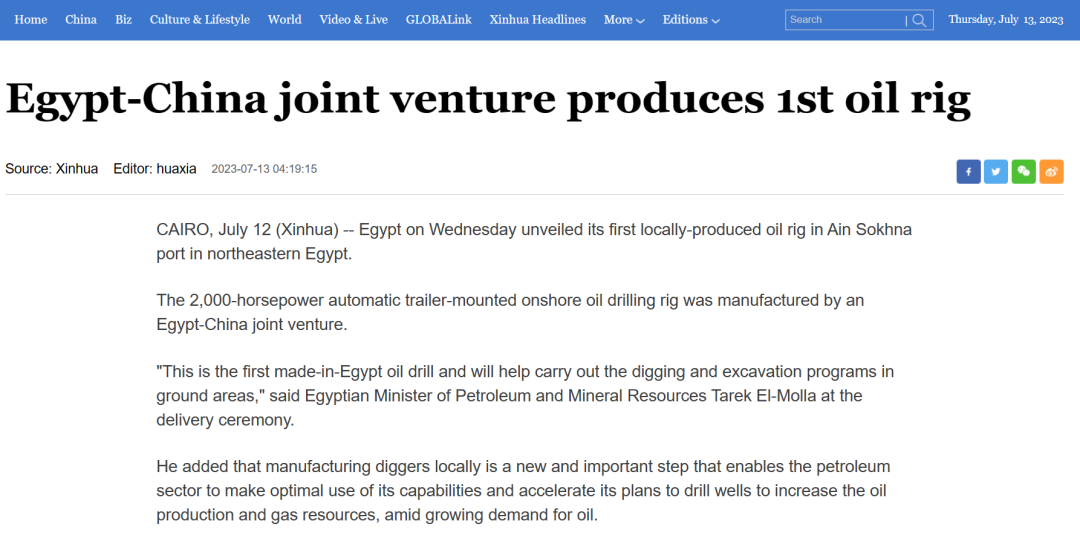 活動當天,埃及石油與礦產資源部在Facebook中介紹了本次交付儀式。埃及能源行業主流媒體《石油的未來》刊登了題為《在Tarek El-Molla時代,EPHH是如何成功制造埃及和中東的第一款陸地鉆機的?》的報道,介紹了在EPHH(宏華埃及)的支持下,埃及逐漸實現鉆機本土制造的創舉,此次重大成就不僅為當地提供了豐富的就業機會,還進一步擴大了EPHH(宏華埃及)在埃及和中東的影響力。