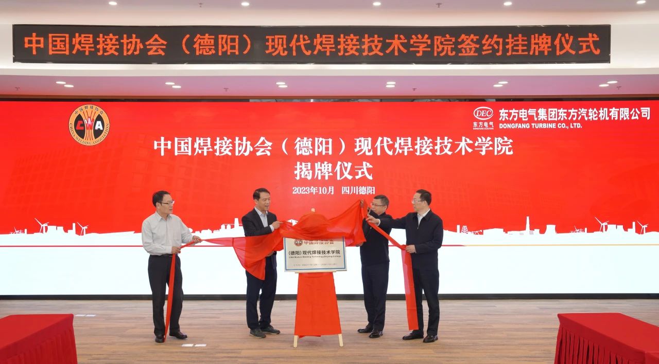 31日,中國焊接協會(德陽)現代焊接技術學院簽約及掛牌儀式在東方電氣集團東方汽輪機有限公司舉行,中國焊接協會副會長兼秘書長李連勝、副秘書長吳九澎,東方電氣集團總經理助理、組織人事部部長、黨校校長曾小平,東方汽輪機黨委書記、董事長劉輝共同為“中國焊接協會(德陽)現代焊接技術學院”揭牌。中國焊接協會與東方汽輪機簽署了合作協議。