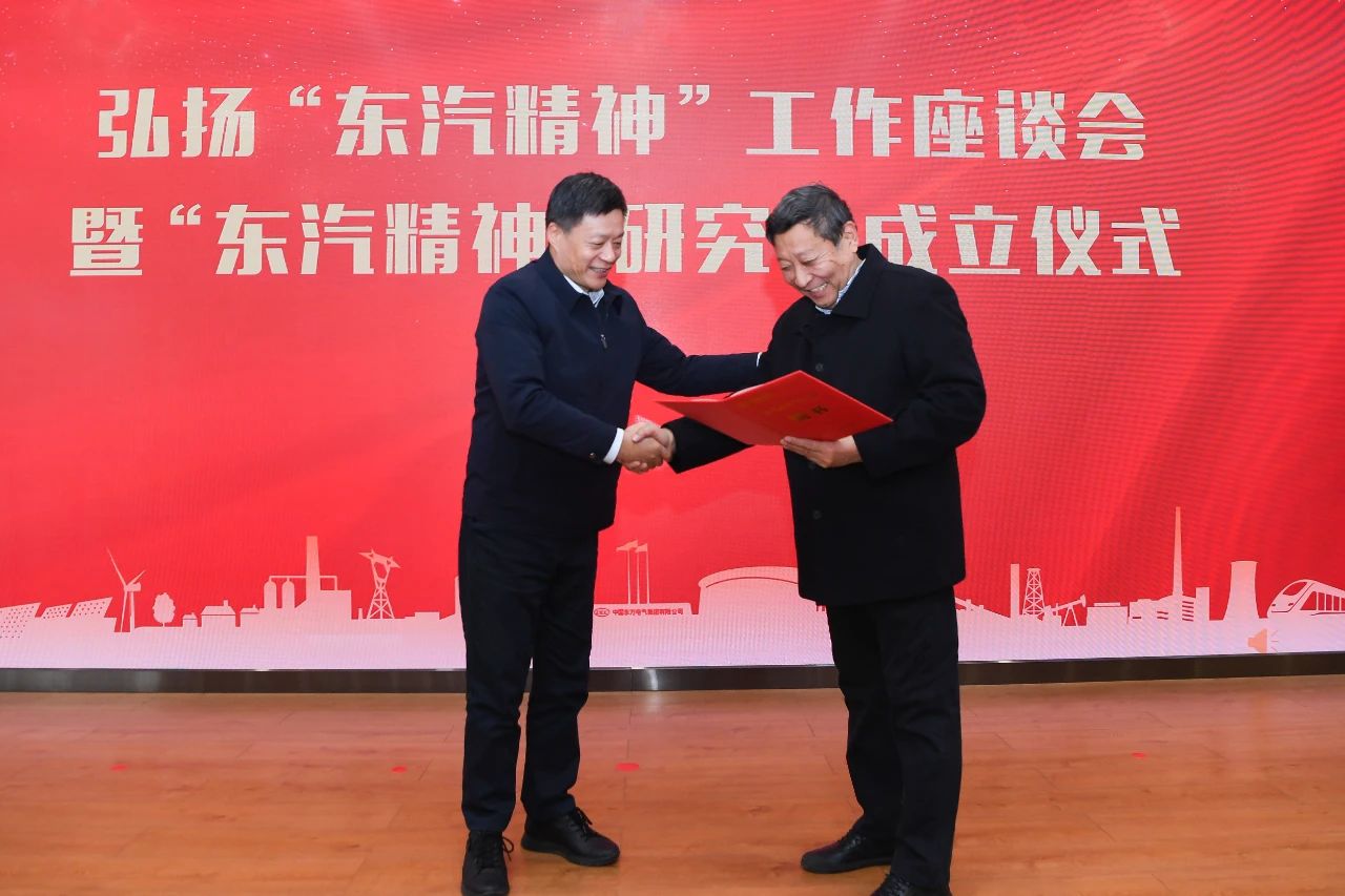 俞培根充分肯定了近年來弘揚和踐行“東汽精神”取得的成績,分析了新時代弘揚“東汽精神”的形勢和意義,對下一步重點工作進行了安排部署。俞培根指出,弘揚“東汽精神”,是貫徹落實習近平總書記重要指示批示精神的生動實踐,是助推賦能實現新型工業化的必然要求,是加快建設世界一流企業的迫切需要。俞培根強調,成立“東汽精神”研究會,是弘揚、踐行和傳播“東汽精神”新的起點,要堅持用好“東汽精神”傳家寶,推動“東汽精神”成為全體東方電氣人的共同信仰,成為支撐創建世界一流的精神力量,推動高質量發展的內生動力。