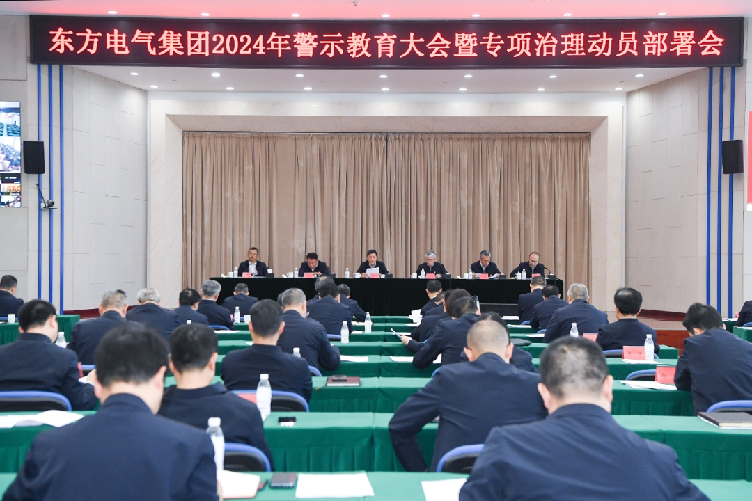 本網(wǎng)訊 3月29日,東方電氣集團(tuán)召開2024年警示教育大會暨專項(xiàng)治理動員部署會,深入學(xué)習(xí)貫徹習(xí)近平新時代中國特色社會主義思想,全面貫徹黨的二十大和二十屆二中全會精神,堅(jiān)決貫徹二十屆中央紀(jì)委三次全會精神特別是習(xí)近平總書記關(guān)于黨的自我革命的重要思想,認(rèn)真落實(shí)中央巡視整改有關(guān)要求,開展警示教育,加強(qiáng)廉潔文化建設(shè),深化專項(xiàng)治理,持之以恒推進(jìn)全面從嚴(yán)治黨。集團(tuán)公司領(lǐng)導(dǎo)俞培根、張彥軍、宋致遠(yuǎn)、劉智全、孫國君、袁明剛出席會議。