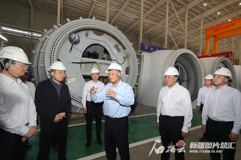 ▲5月19日,馬興瑞走進新疆東方風電新能源有限公司生產車間,詳細了解風機等設備生產制造情況。石榴云/新疆日報記者 崔志堅攝