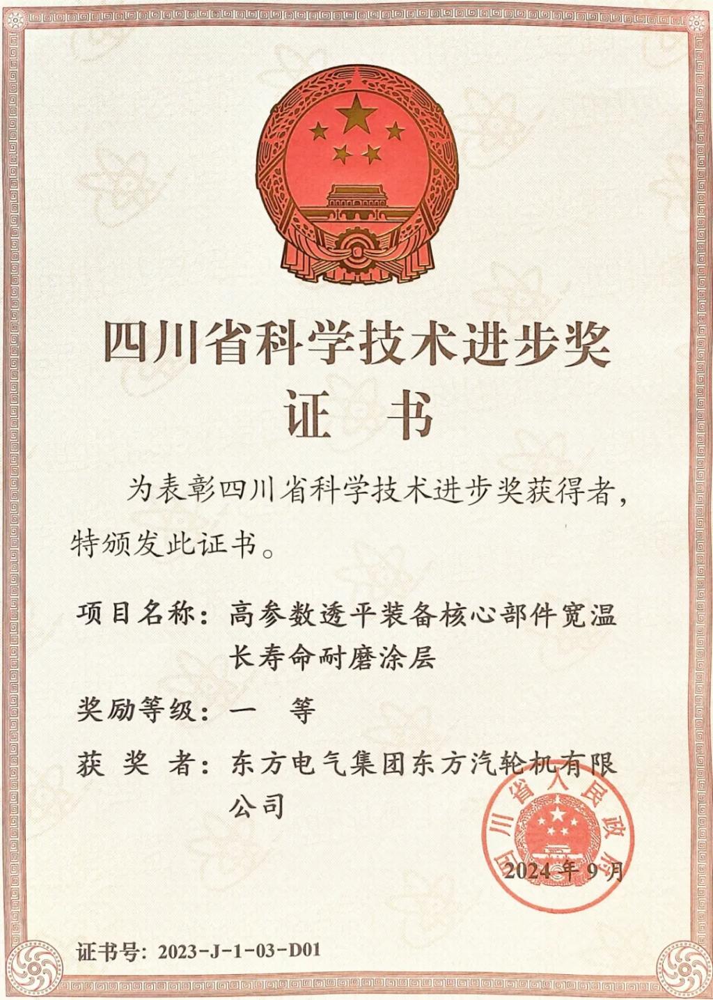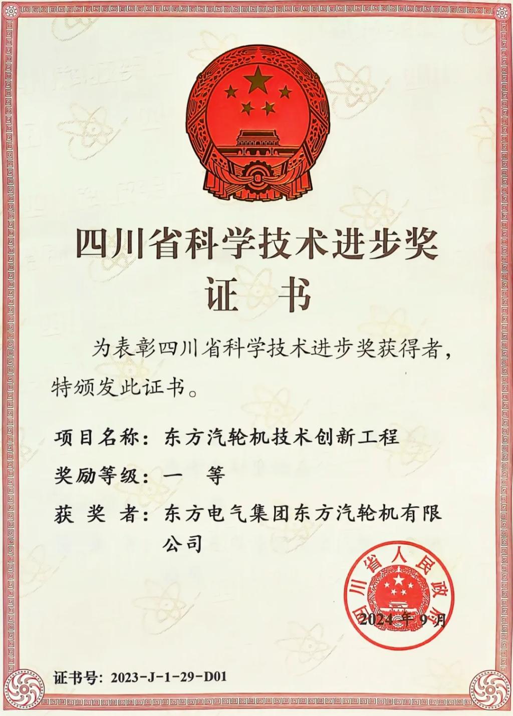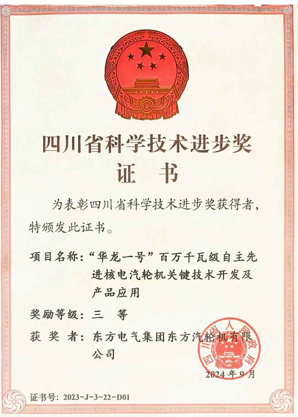 本網(wǎng)訊 9月10日,四川省科技大會(huì)在成都召開,隆重表彰2023年度四川省科學(xué)技術(shù)獎(jiǎng)獲獎(jiǎng)代表。東方電氣集團(tuán)5項(xiàng)成果獲2023年度四川省科學(xué)技術(shù)進(jìn)步獎(jiǎng),其中,一等獎(jiǎng)2項(xiàng),二等獎(jiǎng)1項(xiàng),三等獎(jiǎng)2項(xiàng)。