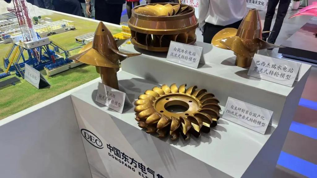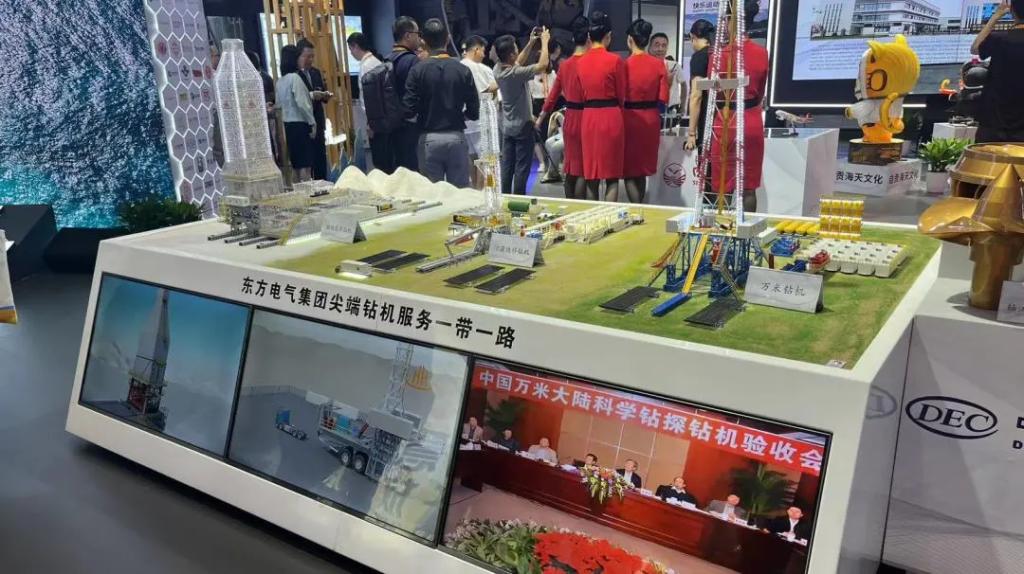 展會期間,東方電氣高端鉆機(jī)、高效水輪機(jī)等硬核產(chǎn)品模型驚喜亮相,展示了東方電氣“六電六業(yè)”的綠色低碳產(chǎn)業(yè)布局、產(chǎn)品出口和綜合服務(wù)貿(mào)易,吸引了眾多參觀者駐足觀看,展示了中央企業(yè)在服務(wù)全球、推動全球能源綠色低碳轉(zhuǎn)型中的積極作用。