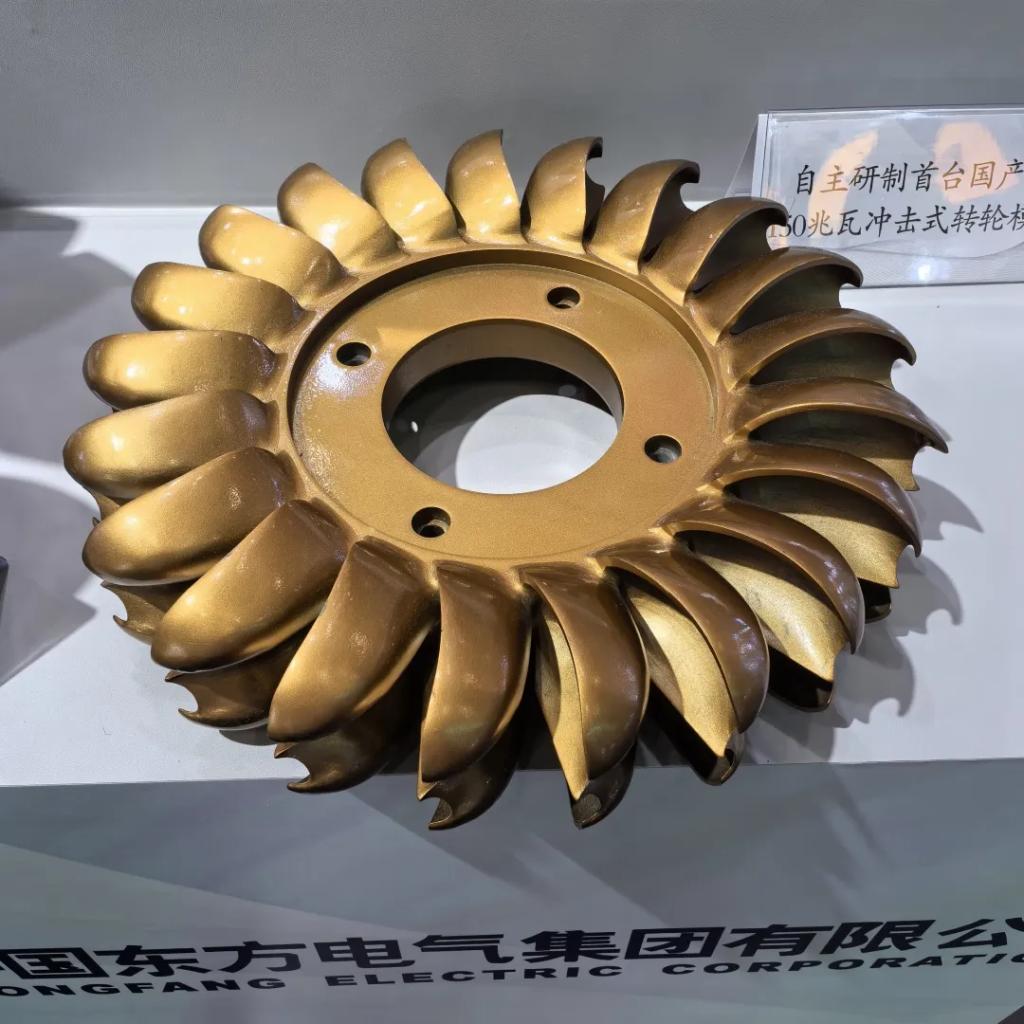 東方電氣自主研制的首臺國產(chǎn)化150兆瓦沖擊式轉(zhuǎn)輪,重約20噸,最大直徑約4米,打破了國外長期壟斷,實(shí)現(xiàn)了自主技術(shù)在沖擊式水電領(lǐng)域從“0到1”的突破。