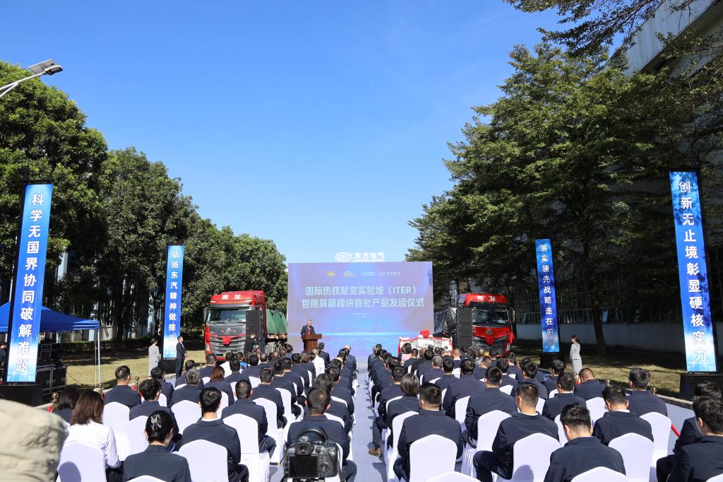11月29日,國際熱核聚變實(shí)驗(yàn)堆(ITER)計(jì)劃的包層屏蔽模塊全球首發(fā)儀式在東方電氣集團(tuán)所屬東方重機(jī)舉行,首批48件包層屏蔽模塊以水陸聯(lián)運(yùn)方式發(fā)往法國,兌現(xiàn)國際承諾。