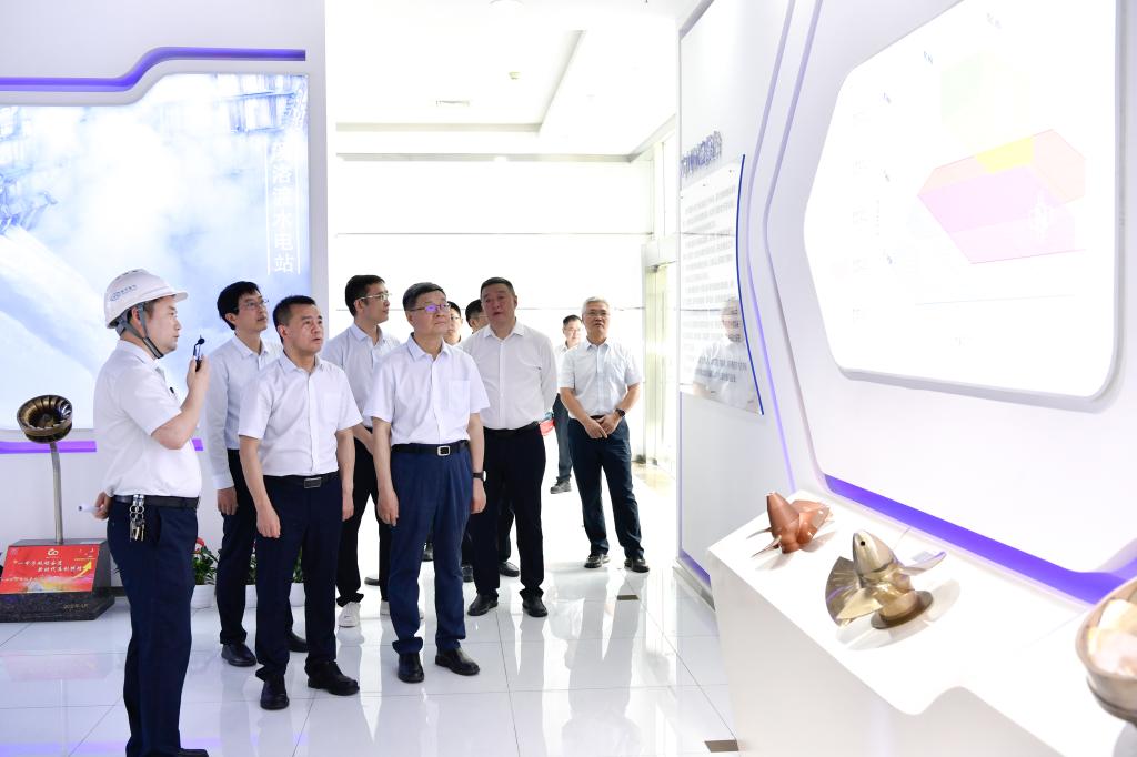羅乾宜深入東方電機重型裝備制造數字化車間、大型發電機生產車間、屏蔽泵事業部、綠色智能焊接數字化車間、定子沖片綠色“無人車間”、水力試驗室、“東電印跡”工業歷史文化園,實地調研東方電機發展歷程、項目履約、車間工藝布局、智改數轉、科研平臺建設等情況。